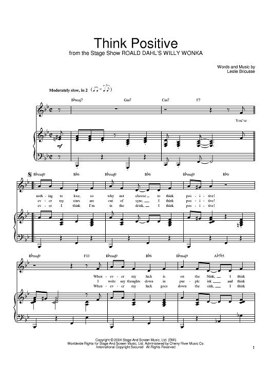 Digital Sheet Music for Think Positive by Leslie Bricusse scored for Piano/Vocal/Chords; id:393666