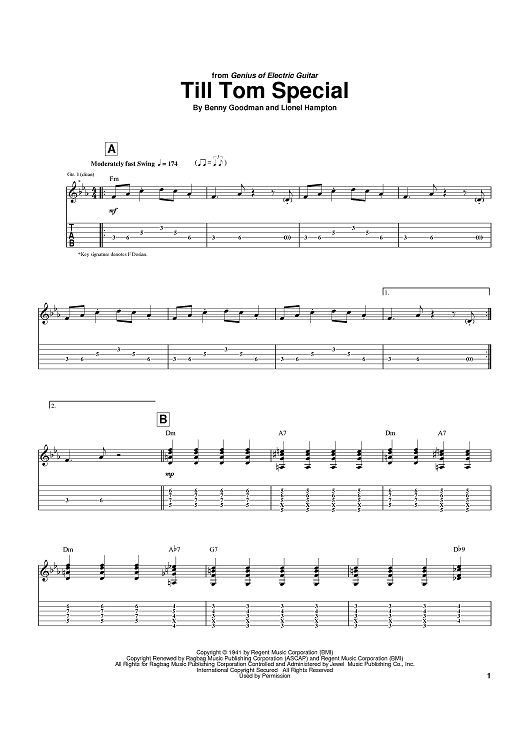 Digital Sheet Music for Till Tom Special by Benny Goodman, Lionel Hampton, Charlie Christian scored for Guitar Tab; id:371580