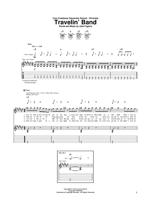 Digital Sheet Music for Travelin' Band by John Fogerty, Creedence Clearwater Revival scored for Guitar Tab; id:389490