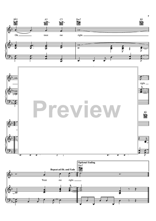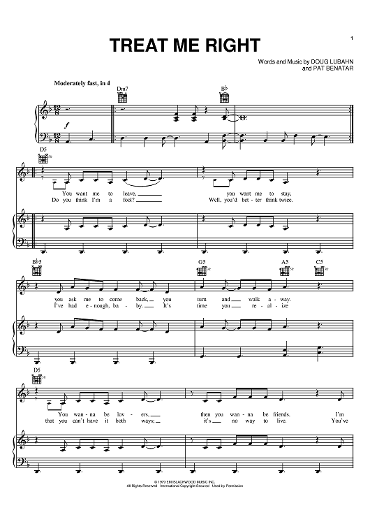 Digital Sheet Music for Treat Me Right by Pat Benatar, Doug Lubahn scored for Piano/Vocal/Chords; id:388480