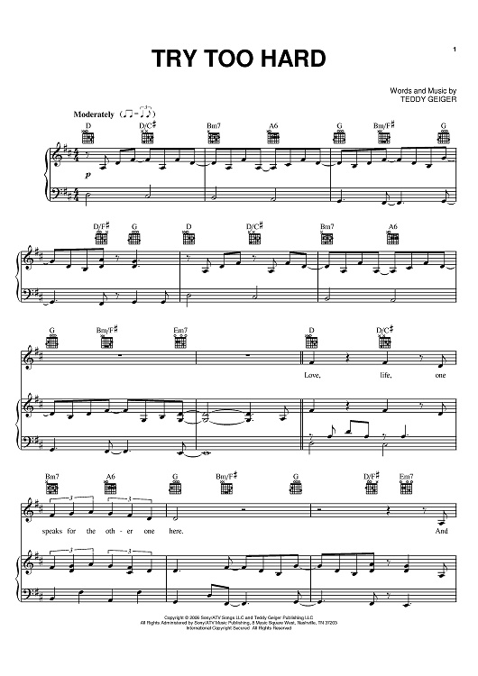 Digital Sheet Music for Try Too Hard by Teddy Geiger scored for Piano/Vocal/Chords; id:392272