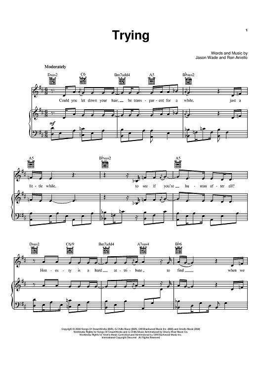 Digital Sheet Music for Trying by Jason Wade, Lifehouse, Ron Aniello scored for Piano/Vocal/Chords; id:369399