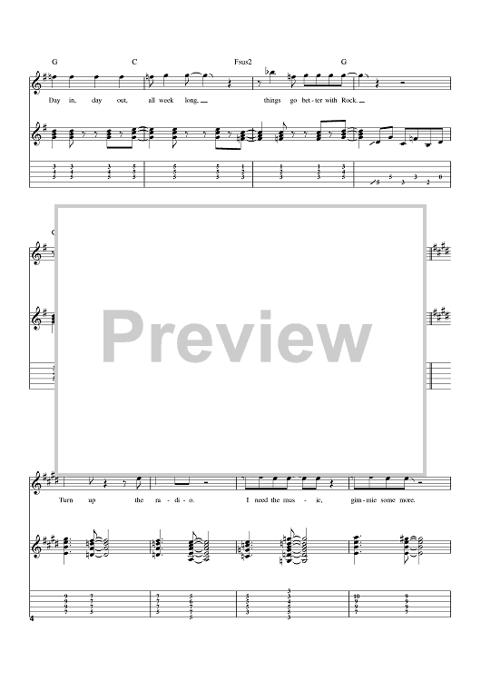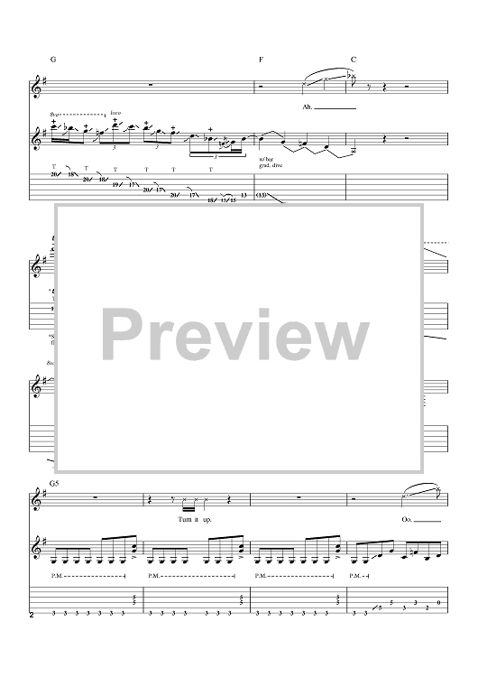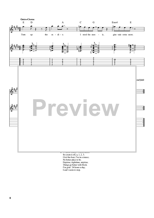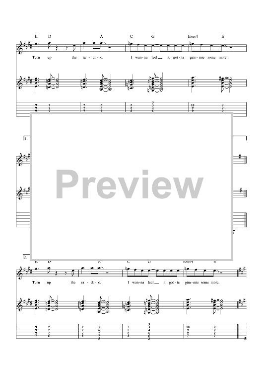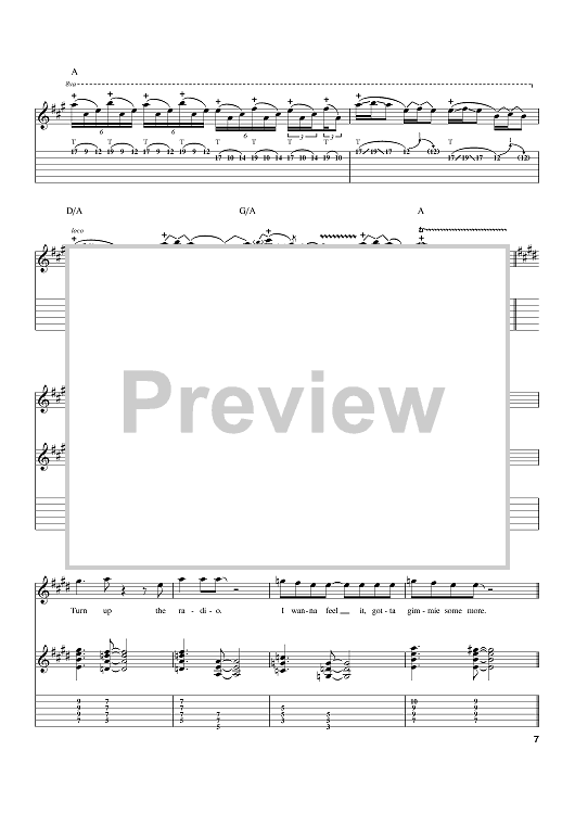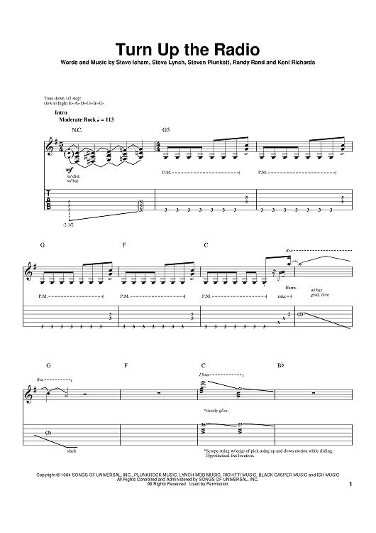 Digital Sheet Music for Turn Up The Radio by Autograph, Steve Isham, Steve Lynch, Steven Plunkett, Randy Rand, Keni Richards scored for Guitar Tab; id:402579