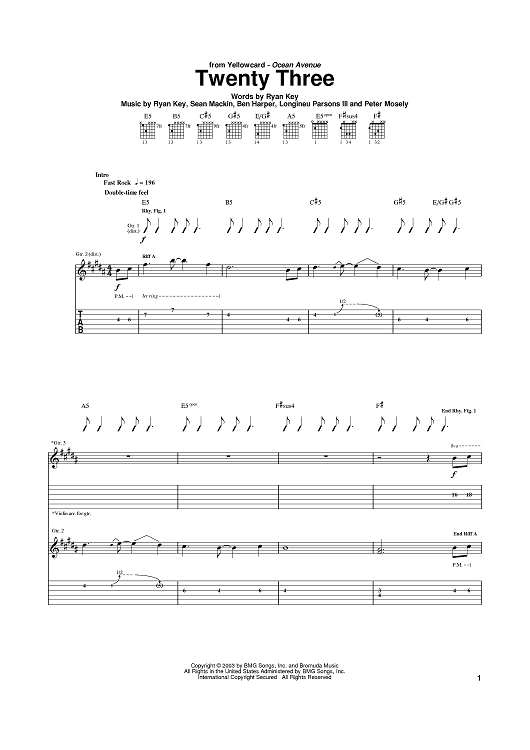 Digital Sheet Music for Twenty Three by Ben Harper, Ryan Key, Sean Mackin, Peter Mosely, LP, Yellowcard scored for Guitar Tab; id:379232