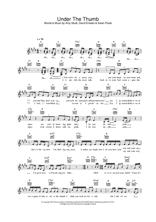 Digital Sheet Music for Under The Thumb by Amy Studt scored for Lead Sheet; id:378162