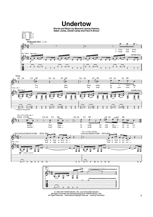 Digital Sheet Music for Undertow by Maynard James Keenan, Daniel Carey, Adam Jones, Tool scored for Guitar Tab; id:367864