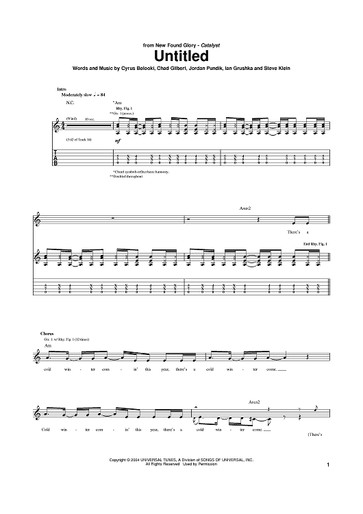 Digital Sheet Music for Untitled by New Found Glory, Cyrus Bolooki, Chad Gilbert, Ian Grushka, Steve Klein, Jordan Pundik scored for Guitar Tab; id:375186