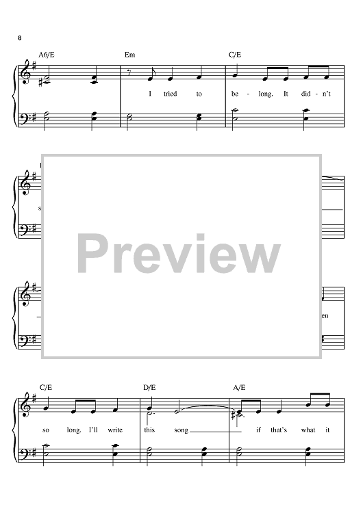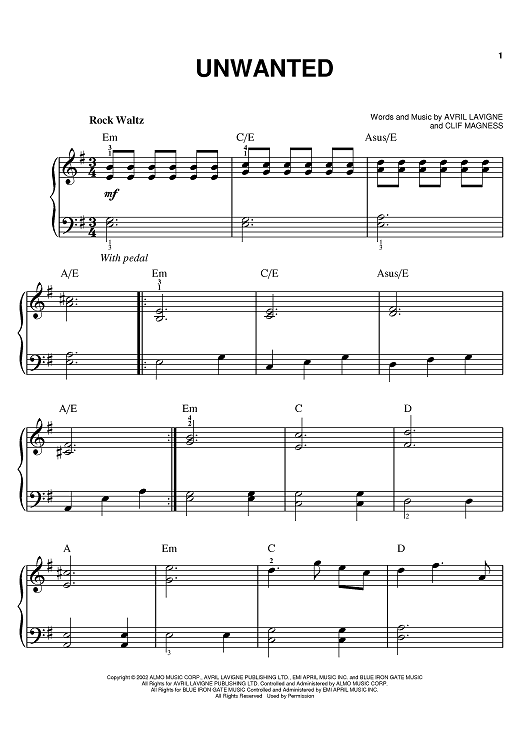 Digital Sheet Music for Unwanted by Clif Magness, Avril Lavigne scored for Easy Piano; id:371169
