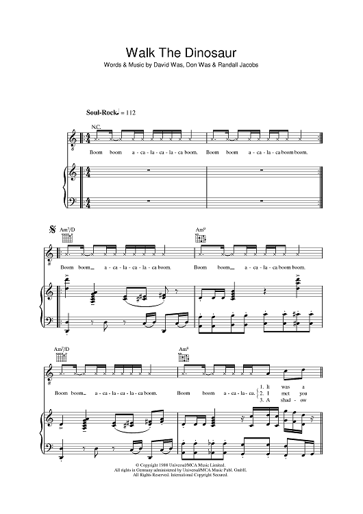 Digital Sheet Music for Walk The Dinosaur by Don Was, Randy Jacobs, David Was, Was (Not Was) scored for Piano/Vocal/Chords; id:393620