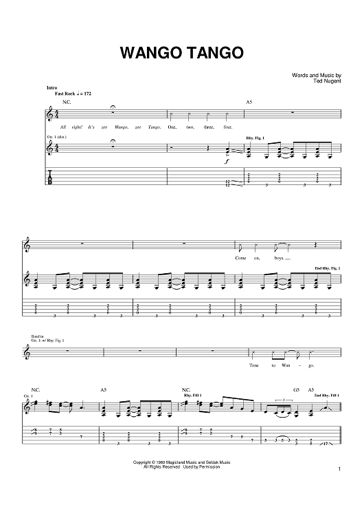 Digital Sheet Music for Wango Tango by Ted Nugent scored for Guitar Tab; id:374144