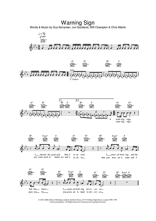 Digital Sheet Music for Warning Sign by Coldplay scored for Lead Sheet; id:377693