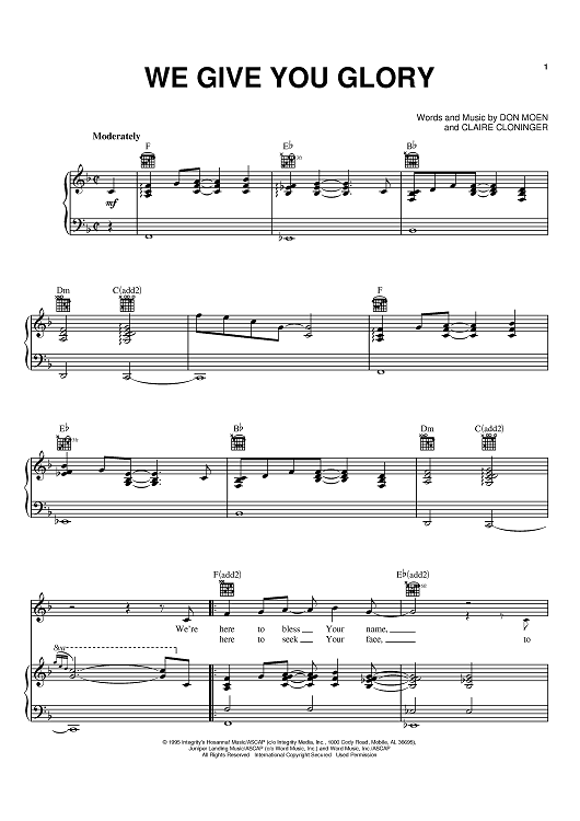Digital Sheet Music for We Give You Glory by Claire Cloninger, Don Moen scored for Piano/Vocal/Chords; id:372122