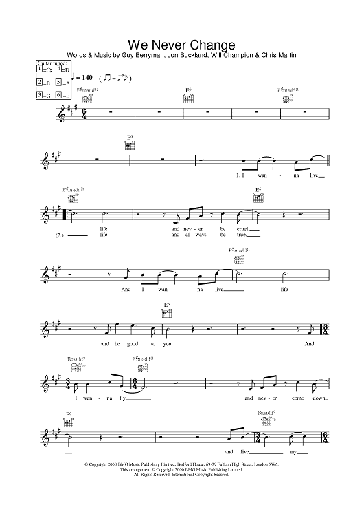 Digital Sheet Music for We Never Change by Coldplay scored for Lead Sheet; id:377206