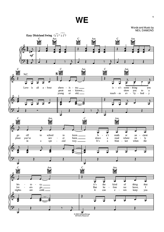 Digital Sheet Music for We by Neil Diamond scored for Piano/Vocal/Chords; id:390067