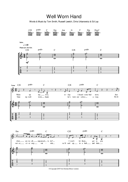 Digital Sheet Music for Well Worn Hand by Editors, Ed Lay, Russell Leetch, Tom Smith, Chris Urbanowicz scored for Guitar Tab; id:398063
