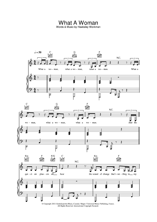 Digital Sheet Music for What A Woman by Hawksley Workman scored for Piano/Vocal/Chords; id:390633