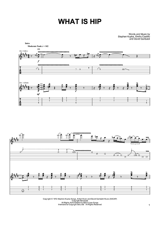 Digital Sheet Music for What Is Hip by Emilio Castillo, David Garibaldi, Stephen Kupka, Jeff Tamelier, Tower Of Power scored for Guitar Tab; id:402512