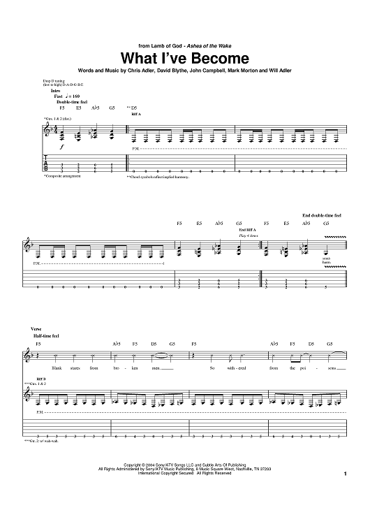 Digital Sheet Music for What I've Become by Chris Adler, Will Adler, Randy Blythe, John Campbell, Lamb Of God, Mark Morton scored for Guitar Tab; id:390173