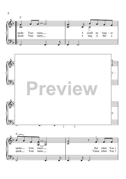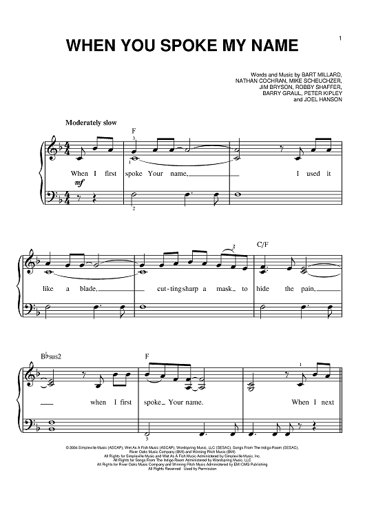 Digital Sheet Music for When You Spoke My Name by Joel Hanson, Pete Kipley, Jim Bryson, Nathan Cochran, Barry Graul, MercyMe, Bart Millard, Mike Scheuchzer, Robby Shaffer scored for Easy Piano; id:391815