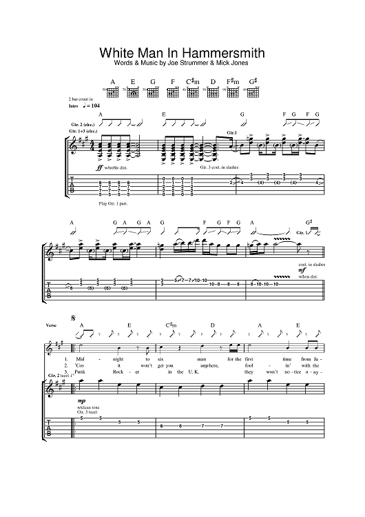 Digital Sheet Music for White Man In Hammersmith Palais by The Clash, Mick Jones, Joe Strummer scored for Guitar Tab; id:387028