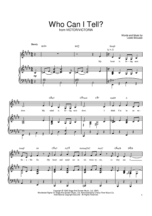 Digital Sheet Music for Who Can I Tell? by Leslie Bricusse scored for Piano/Vocal/Chords; id:393671