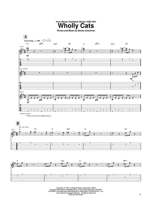Digital Sheet Music for Wholly Cats by Benny Goodman, Charlie Christian scored for Guitar Tab; id:371577
