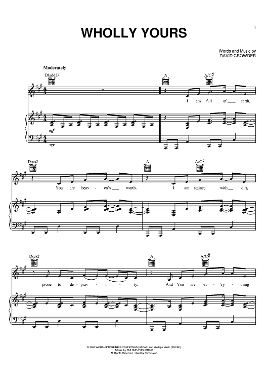 "Wholly Yours" Sheet Music by David Crowder Band