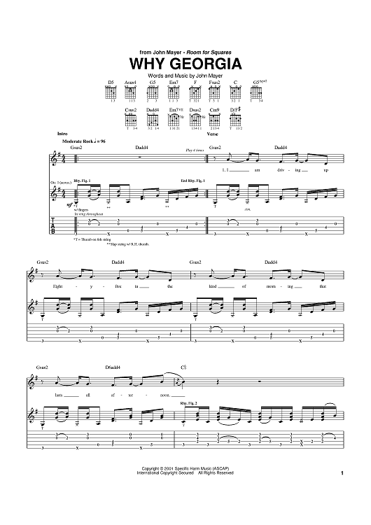 Digital Sheet Music for Why Georgia by John Mayer scored for Guitar Tab; id:371480