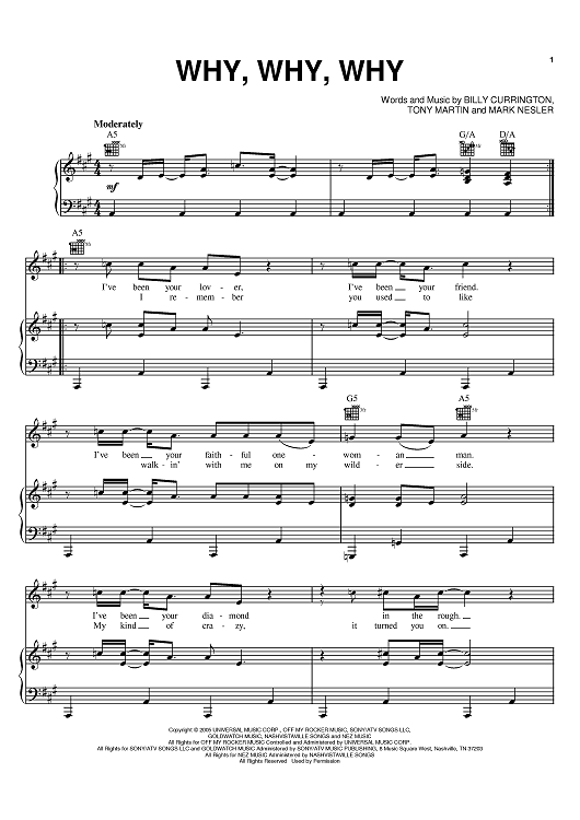 Digital Sheet Music for Why, Why, Why by Tony Martin, Mark Nesler, Billy Currington scored for Piano/Vocal/Chords; id:391837