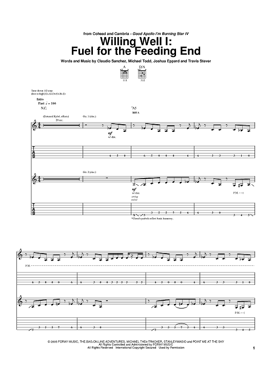 Digital Sheet Music for Willing Well I: Fuel For The Feeding End by Coheed and Cambria, Josh Eppard, Claudio Sanchez, Travis Stever, Michael Todd scored for Guitar Tab; id:391196