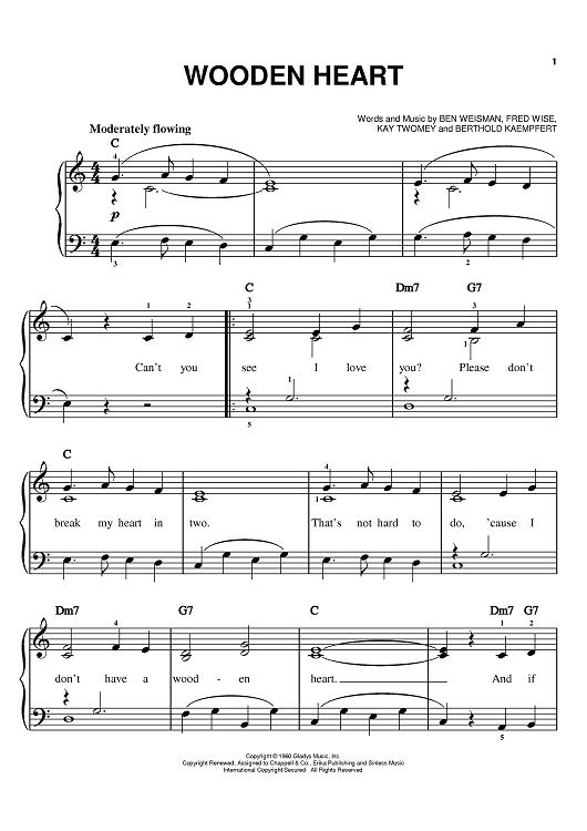 Digital Sheet Music for Wooden Heart by Elvis Presley, Kay Twomey, Fred Wise, Joe Dowell, Ben Weisman scored for Easy Piano; id:372898