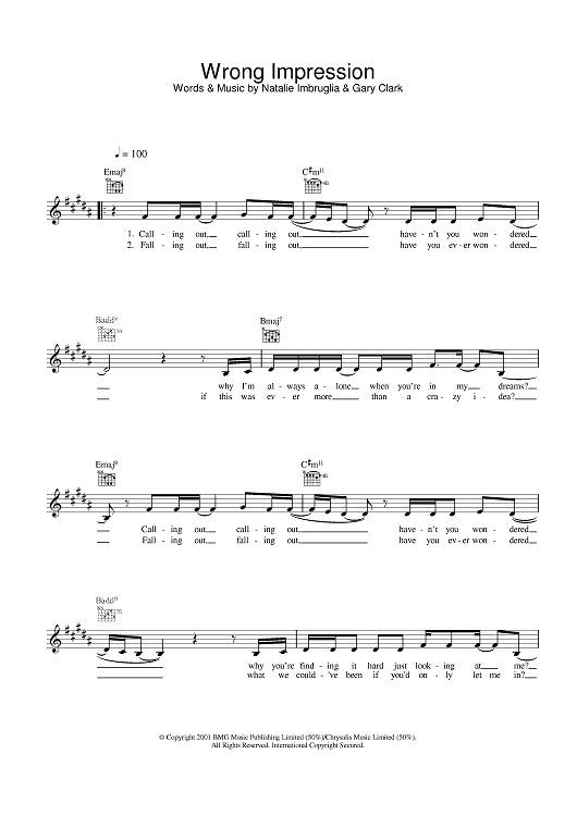 "Wrong Impression" Sheet Music by Natalie Imbruglia