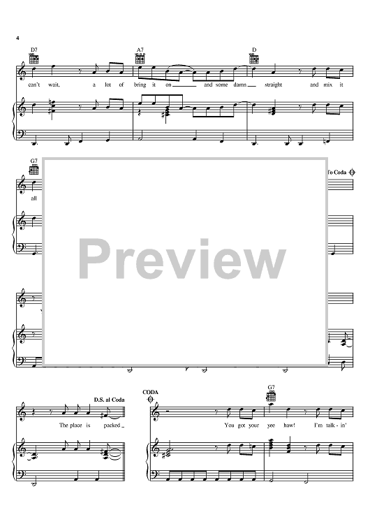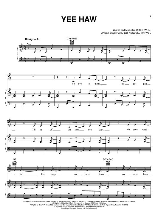 Digital Sheet Music for Yee Haw by Casey Beathard, Kendall Marvel, Jake Owen scored for Piano/Vocal/Chords; id:392261