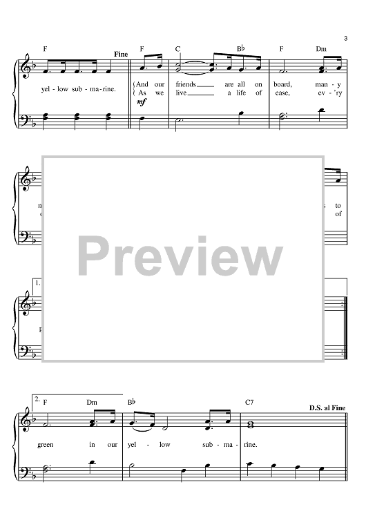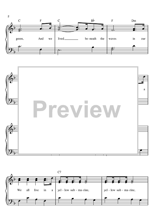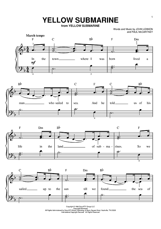 Digital Sheet Music for Yellow Submarine by Paul McCartney, The Beatles, John Lennon scored for Easy Piano; id:375139