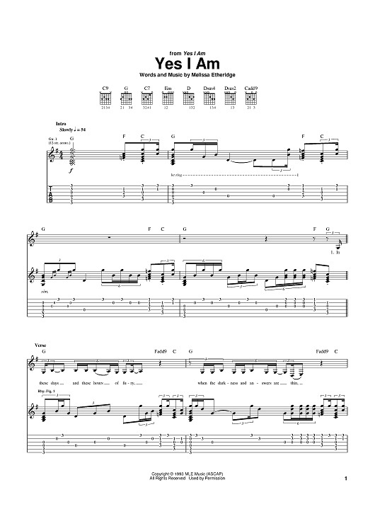 "Yes I Am" Sheet Music by Melissa Etheridge