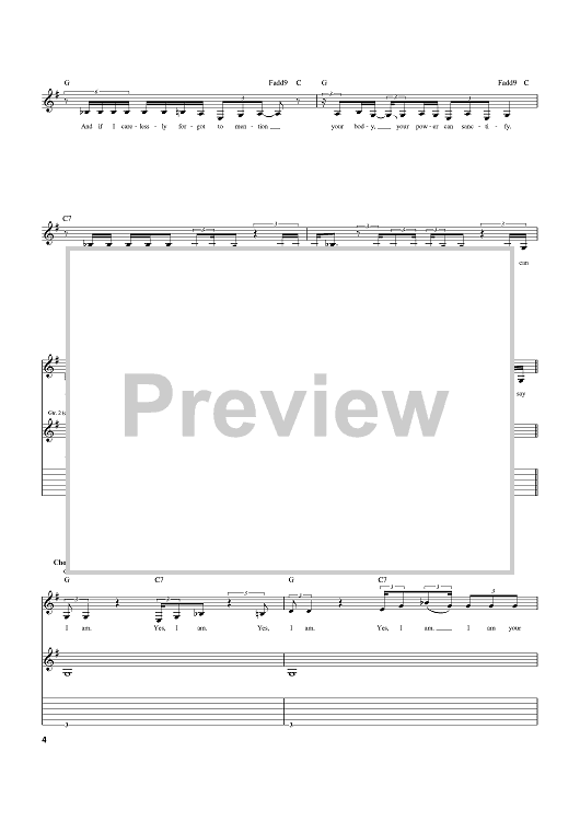 Digital Sheet Music for Yes I Am by Melissa Etheridge scored for Guitar Tab; id:386042