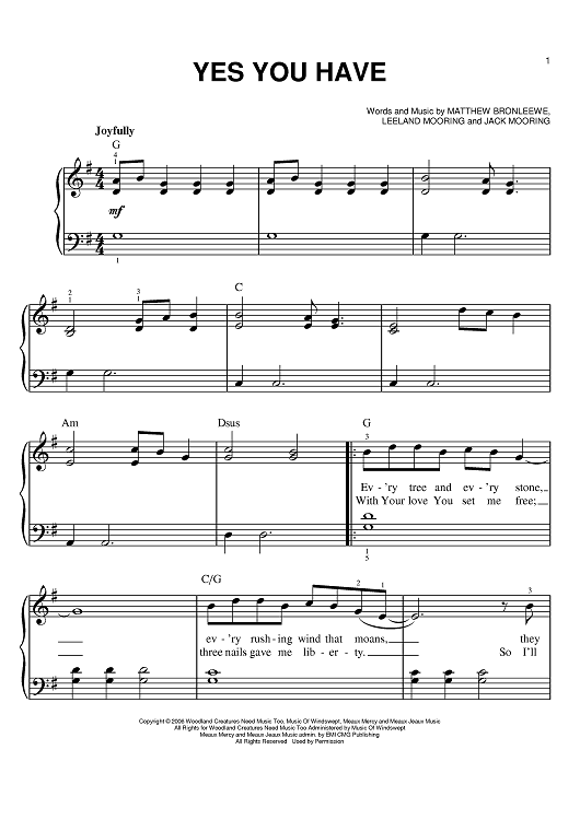 Digital Sheet Music for Yes You Have by Matt Bronleewe, Leeland Mooring, Jack Mooring, Leeland scored for Easy Piano; id:396896