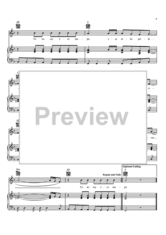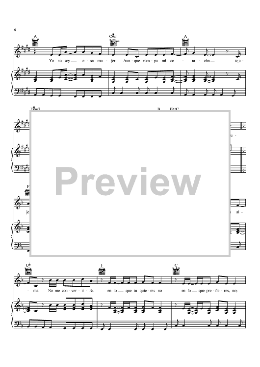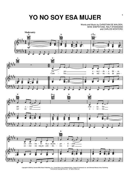 Digital Sheet Music for Yo No Soy Esa Mujer by Christian De Walden, Paulina Rubio, Mike Shepstone, Ralf Stemmann scored for Piano/Vocal/Chords; id:371151