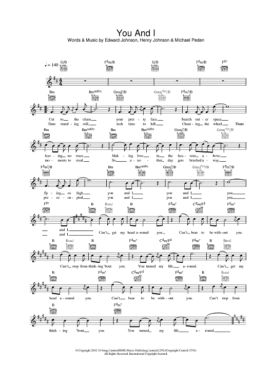 Digital Sheet Music for You And I by Henry Johnson, Michael Peden, Will Young, Edward Johnson scored for Lead Sheet; id:377761