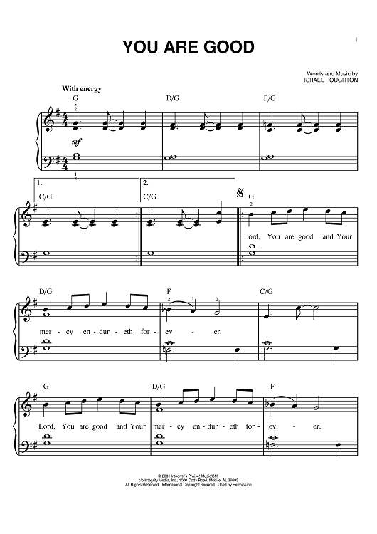 Digital Sheet Music for You Are Good by Israel Houghton, The Katinas scored for Easy Piano; id:401811