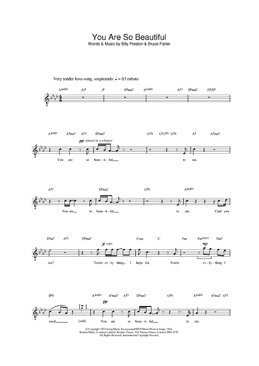 Digital Sheet Music for You Are So Beautiful by Russell Watson scored for Lead Sheet; id:378750