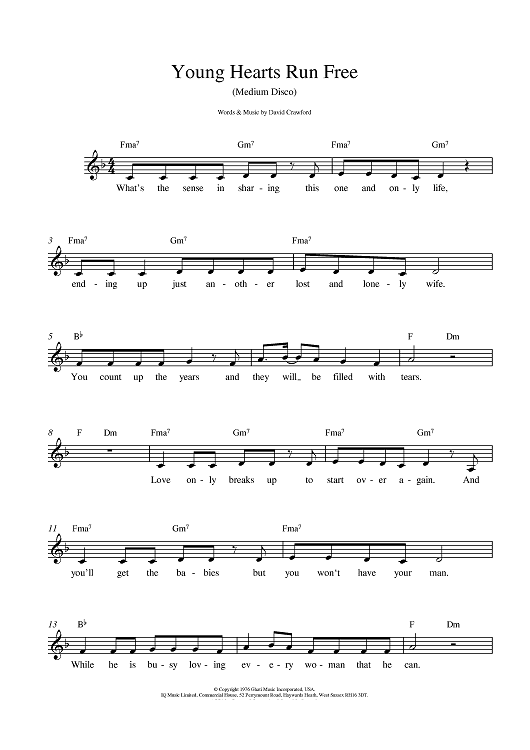 "Young Hearts Run Free" Sheet Music by Dave Crawford