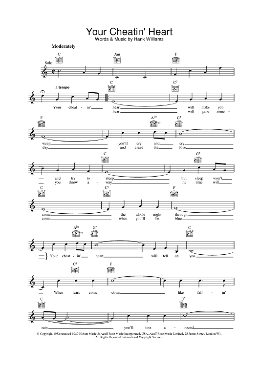 "Your Cheatin' Heart" Sheet Music by Hank Williams
