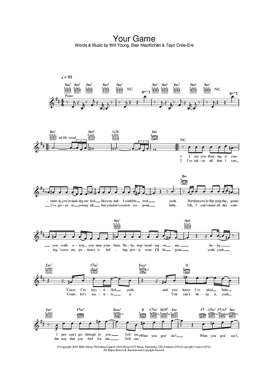 Digital Sheet Music for Your Game by Blair MacKichan, Tayo Onile-Ere, Will Young scored for Lead Sheet; id:382877