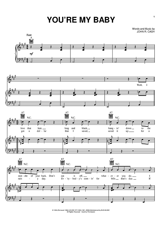 Digital Sheet Music for You're My Baby by Johnny Cash scored for Piano/Vocal/Chords; id:388594