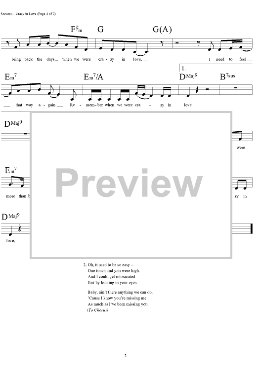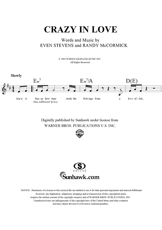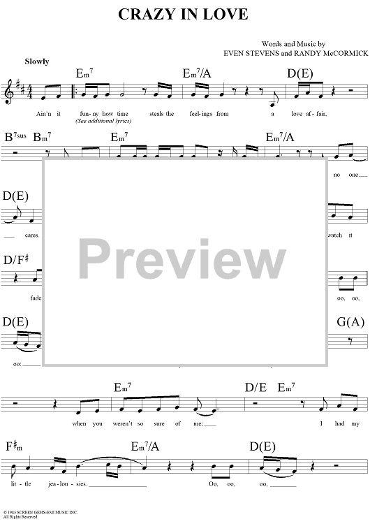 Digital Sheet Music for Crazy in Love by Conway Twitty, Randy McCormick, Even Stevens scored for Lead Sheet; id:258990