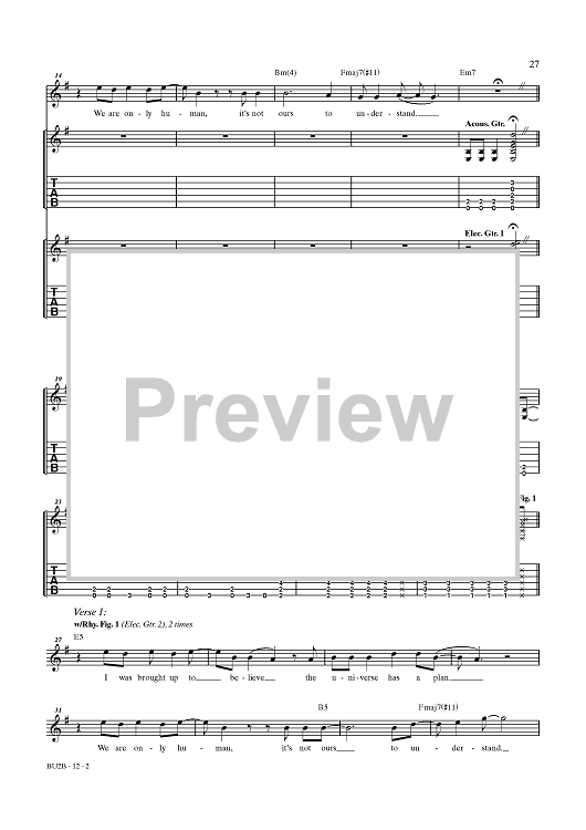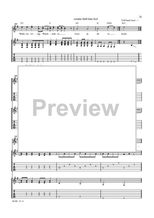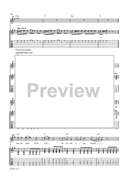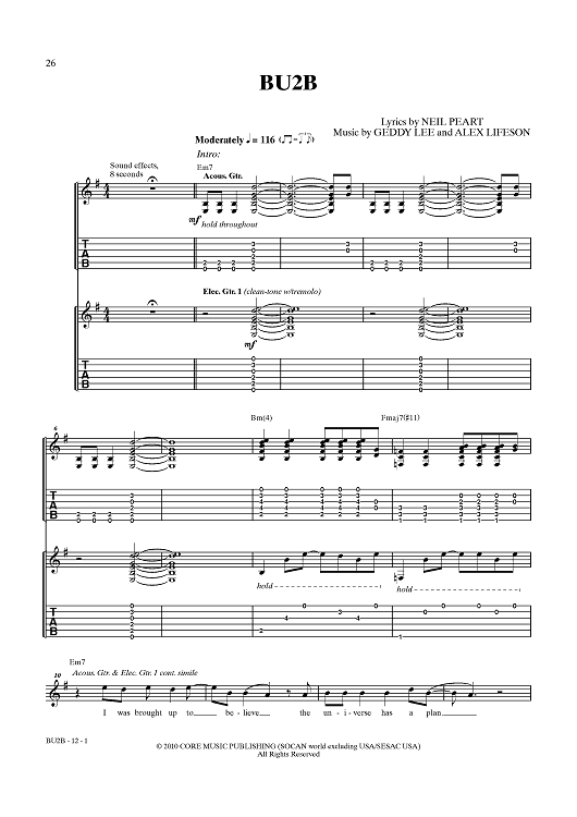 Digital Sheet Music for BU2B by Rush, Geddy Lee, Alex Lifeson, Neil Peart scored for Guitar Tab/Vocal; id:432885