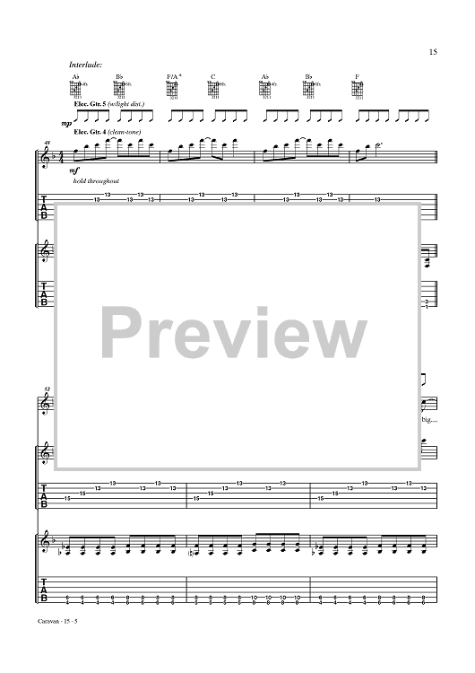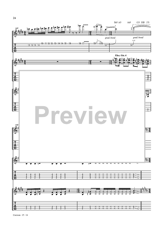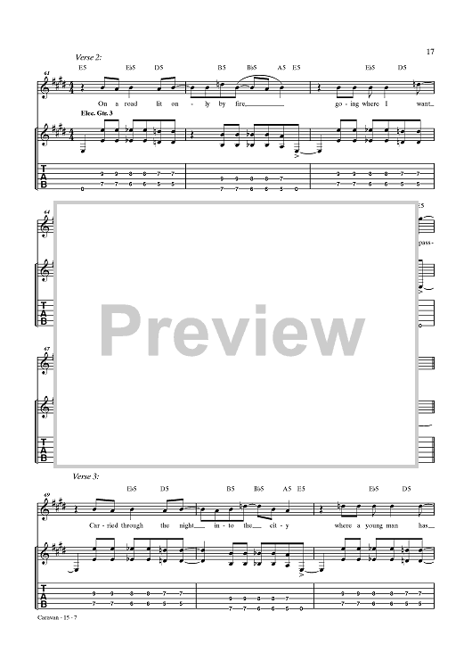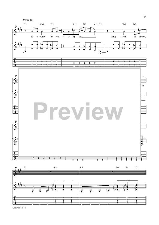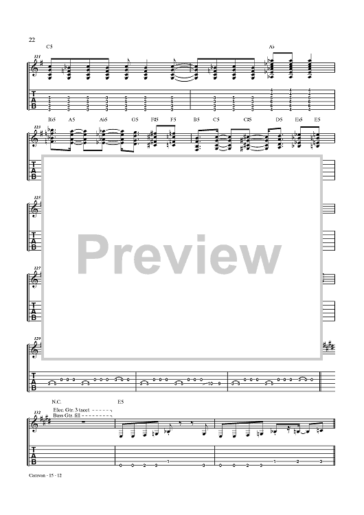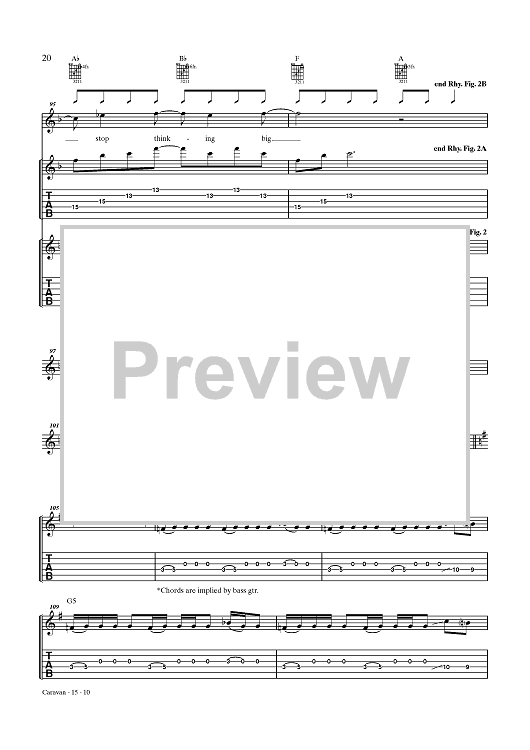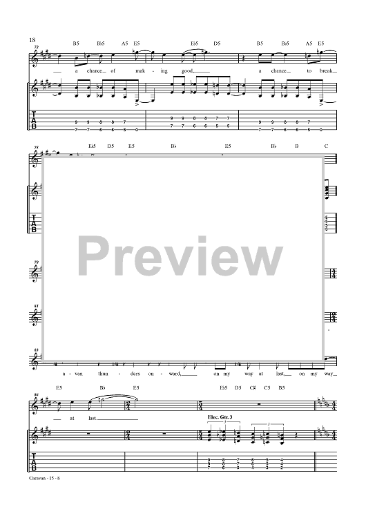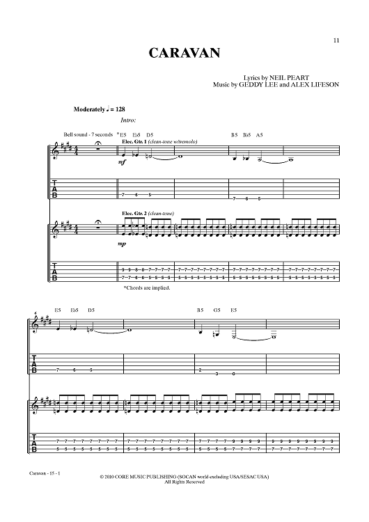 Digital Sheet Music for Caravan by Rush, Geddy Lee, Alex Lifeson, Neil Peart scored for Guitar Tab/Vocal; id:432884