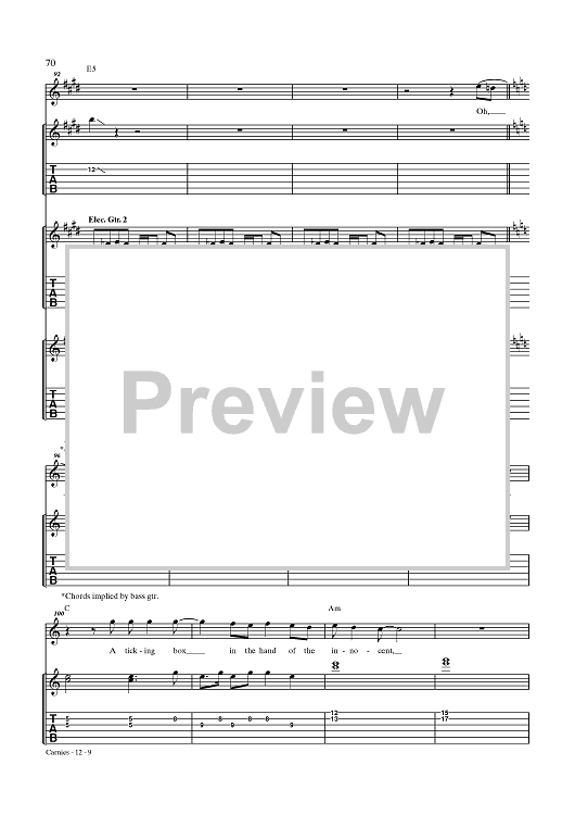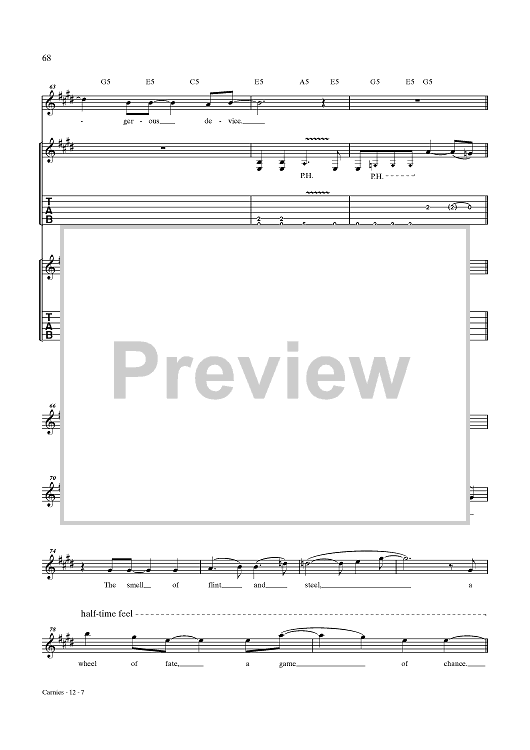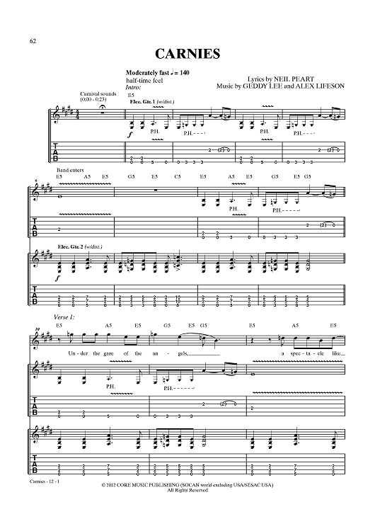 Digital Sheet Music for Carnies by Rush, Geddy Lee, Alex Lifeson, Neil Peart scored for Guitar Tab/Vocal; id:432888