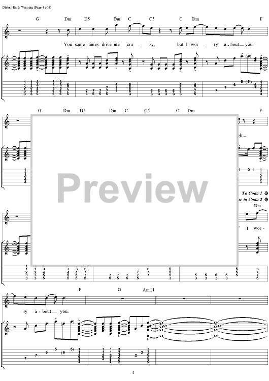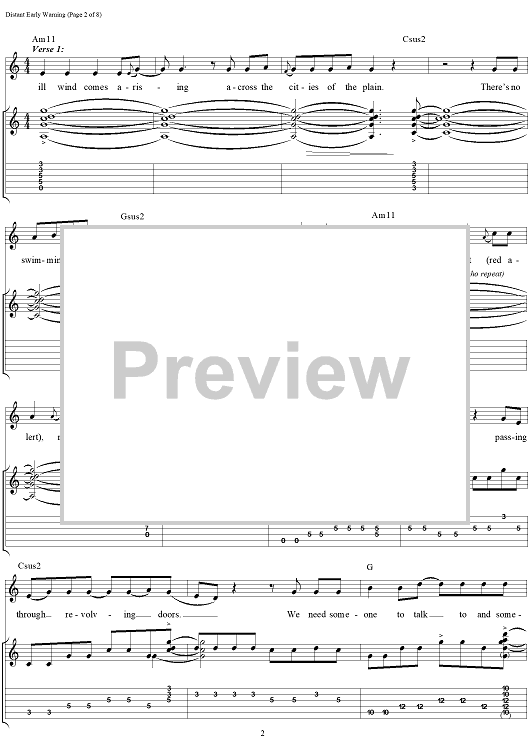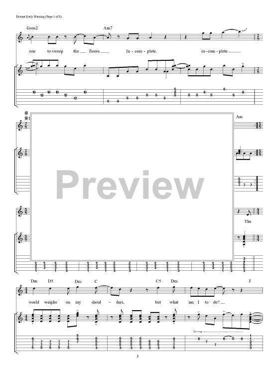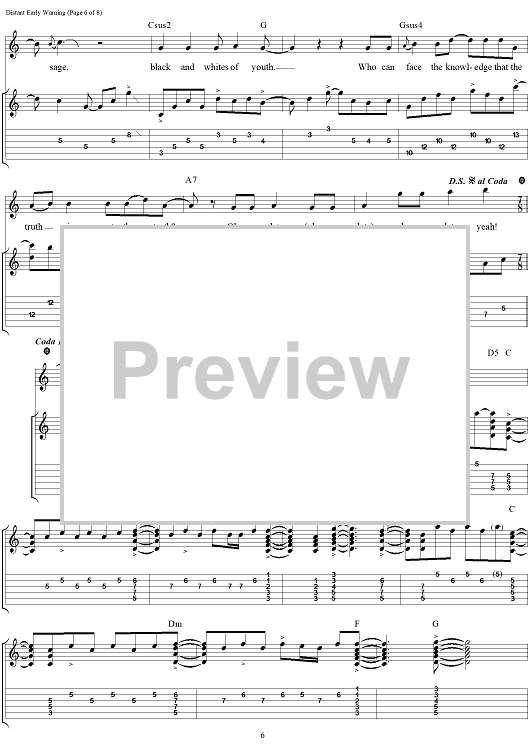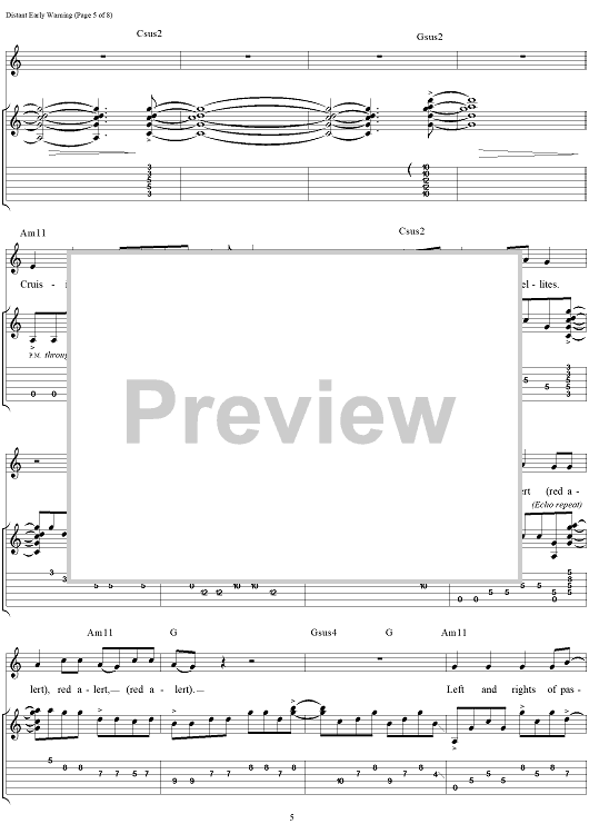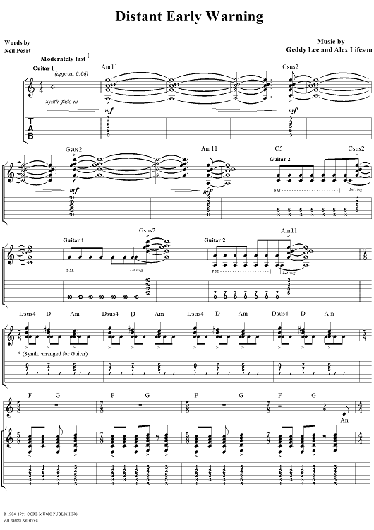 Digital Sheet Music for Distant Early Warning by Rush, Geddy Lee, Alex Lifeson, Neil Peart scored for Guitar Tab/Vocal; id:111650